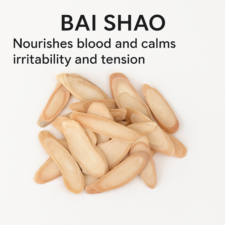 | Bai Shao (White Peony Root) | Nourishes blood and calms irritability and tension* |
