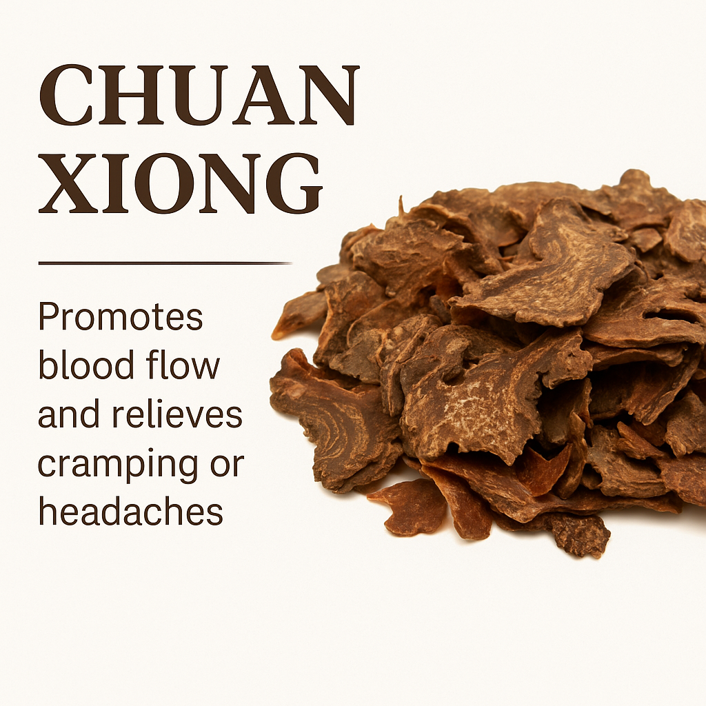 | Chuan Xiong (Szechuan Lovage Rhizome) | Promotes blood flow and relieves cramping or headaches* |